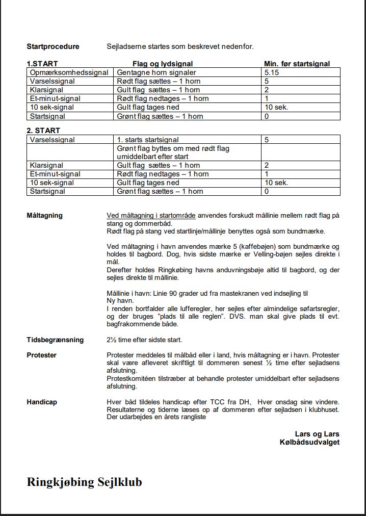 Bestemmelser for Aftensejlads